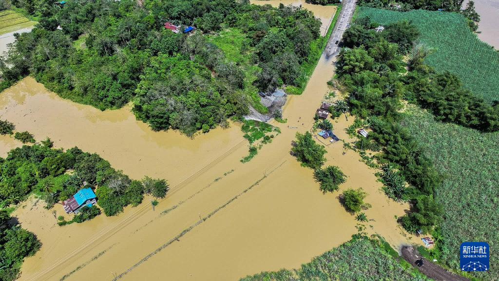 这是10月19日在菲律宾卡皮斯省拍摄的被洪水淹没的道路。