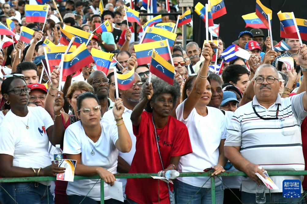 当天,5万多古巴民众聚集在首都哈瓦那总统大道的西蒙·玻利瓦尔雕像前,抗议美国军事威胁委内瑞拉,表达对委内瑞拉人民和政府的坚定支持。