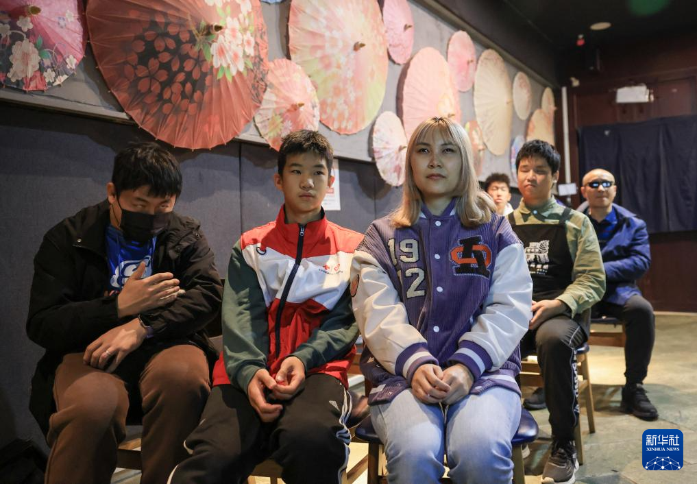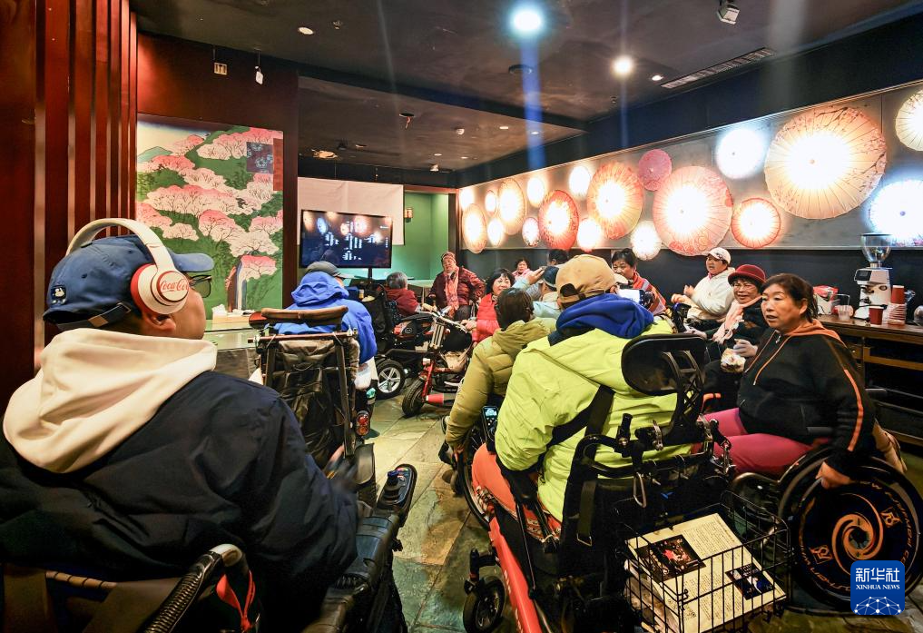 10月26日,在木马童话黑暗餐厅,肢体残疾人士在观影后交流。