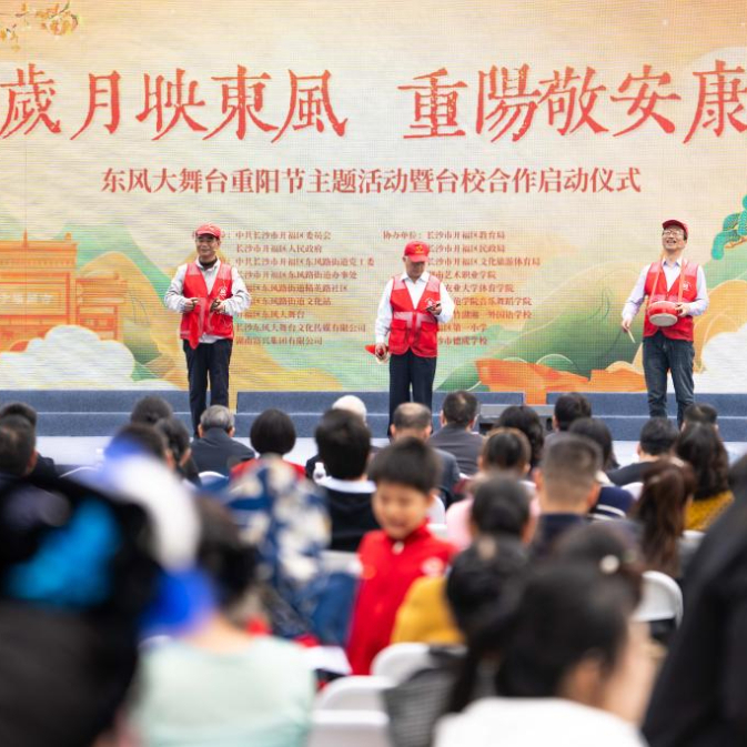 10月29日,湖南省长沙市开福区东风路街道组织开展东风大舞台重阳节主题活动,弘扬尊老敬老传统美德,营造关爱老年群体的社会氛围。