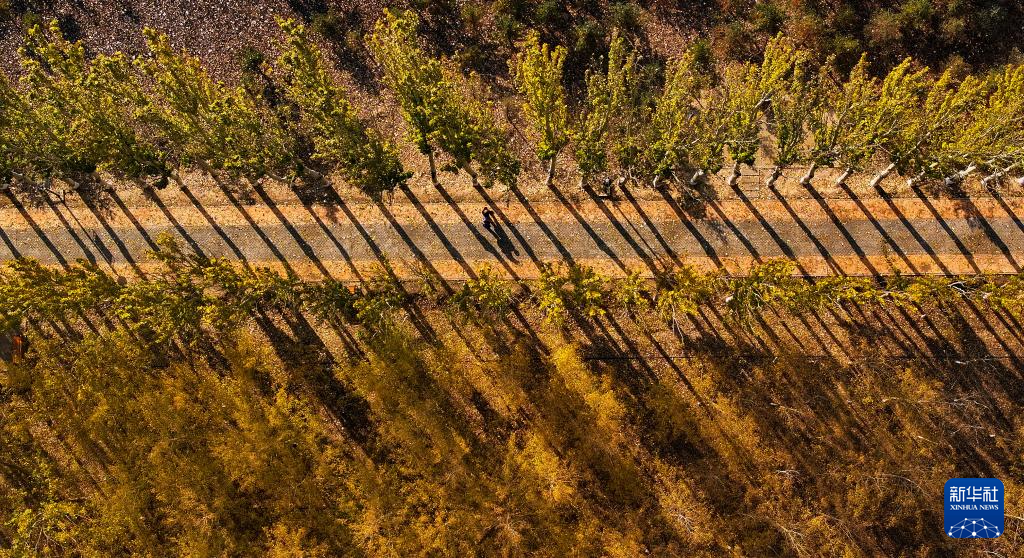 这是10月28日在银川市典农河畔拍摄的秋景(无人机照片)。