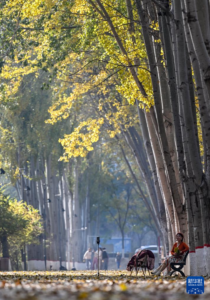 10月28日,市民在银川市海宝公园休闲、散步。