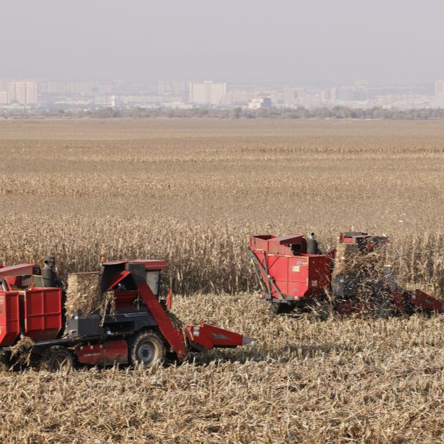 10月28日,农民驾驶收割机在内蒙古鄂尔多斯市达拉特旗收获玉米。