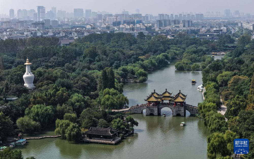 10月11日拍摄的江苏省扬州市瘦西湖景区(无人机照片)。