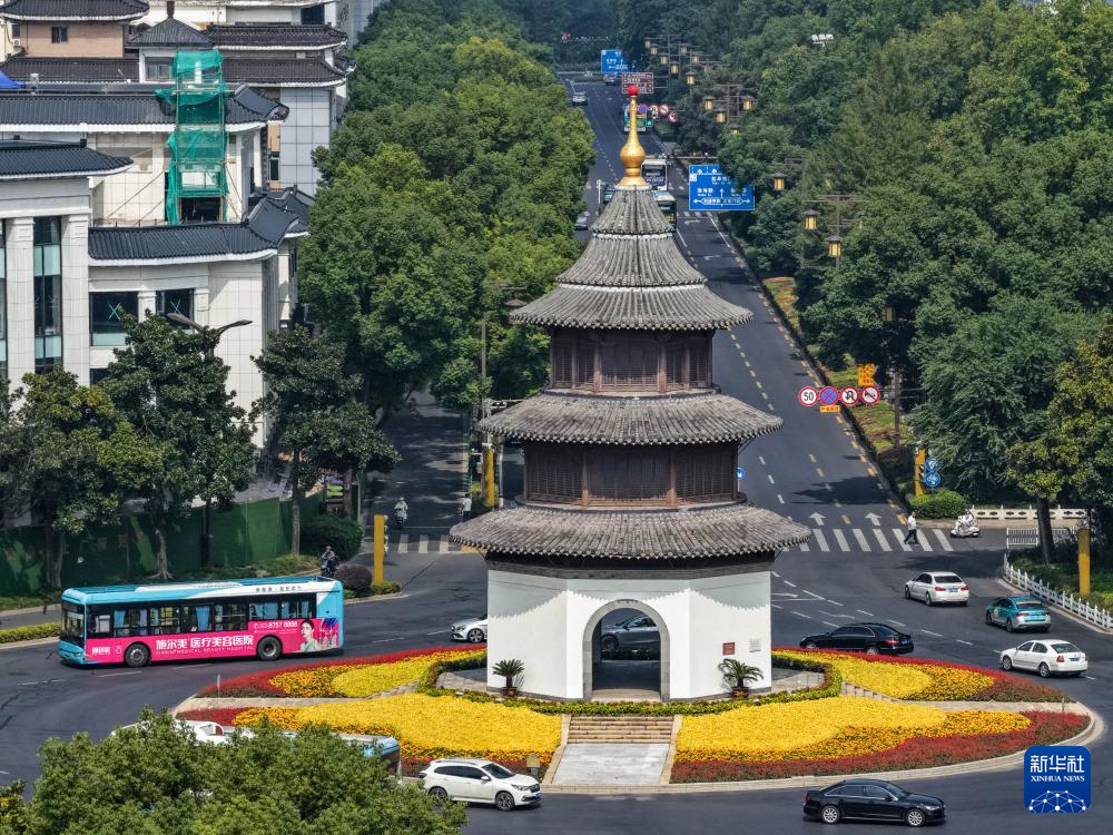 10月11日拍摄的江苏省扬州市文昌阁(无人机照片)。