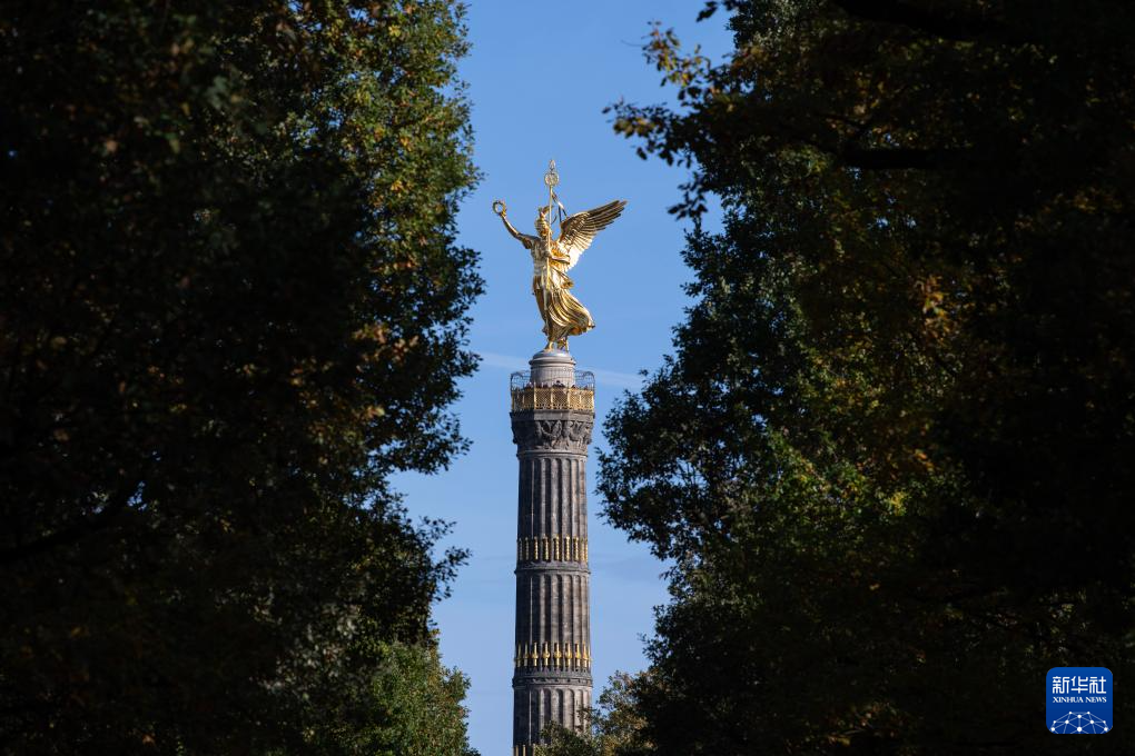 这是10月29日在德国柏林拍摄的胜利纪念柱。