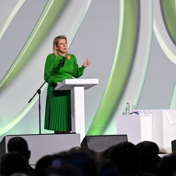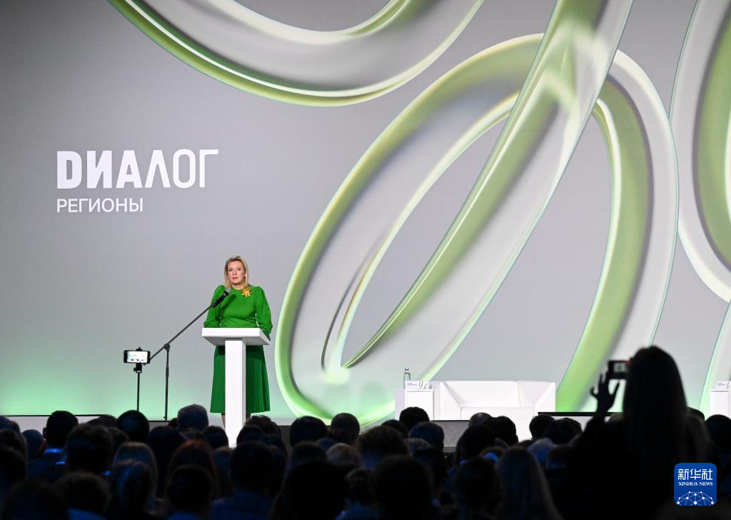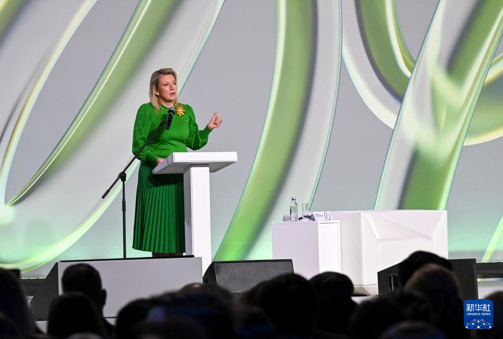 10月29日,在俄罗斯首都莫斯科,俄罗斯外交部发言人扎哈罗娃在“打假防骗对话3.0”国际论坛上讲话。