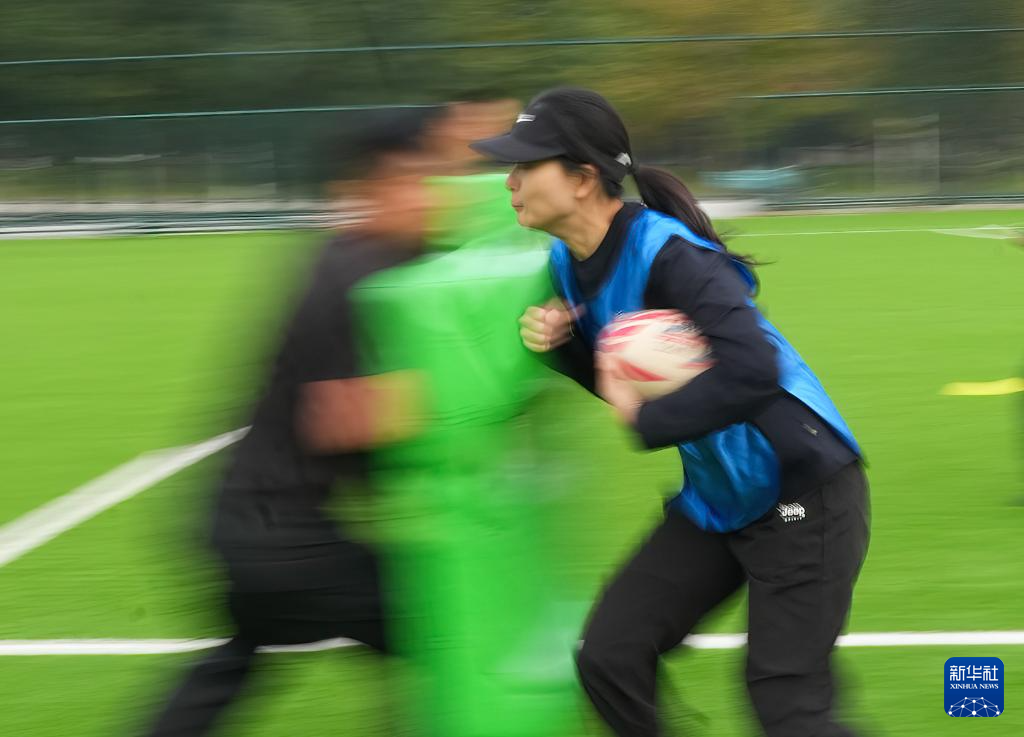 10月23日,参训女刑警在进行“橄榄球冲撞”训练。