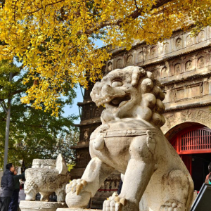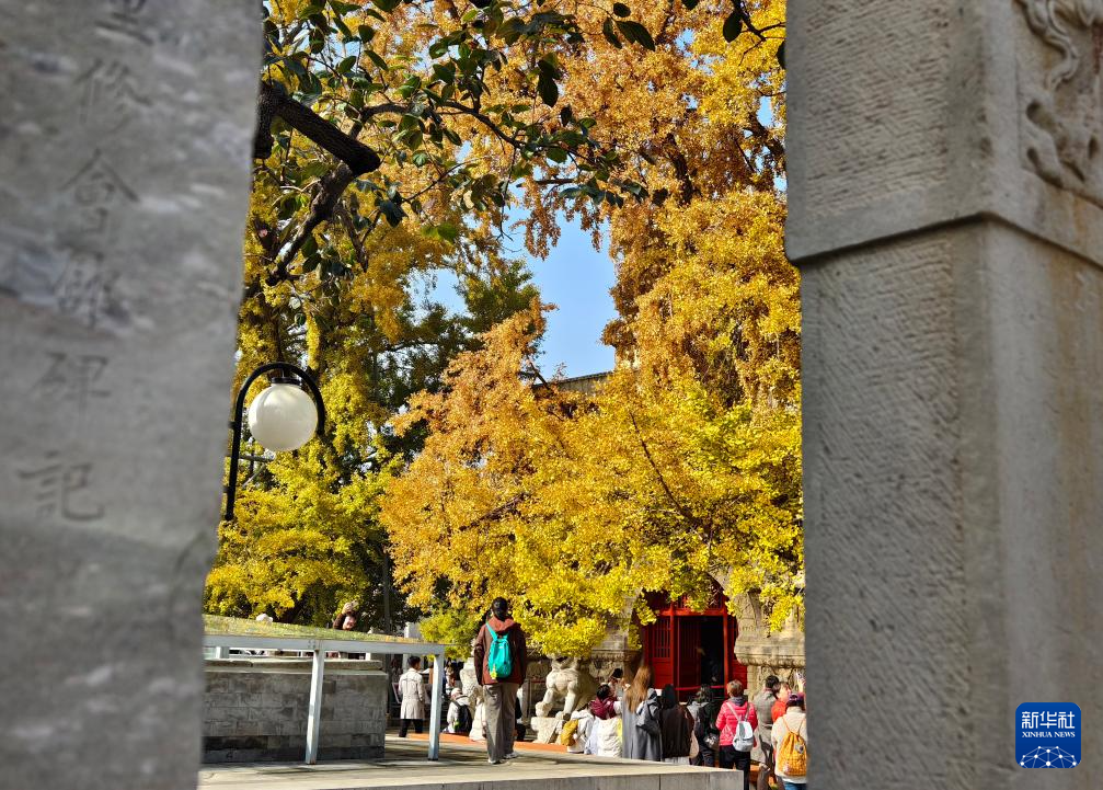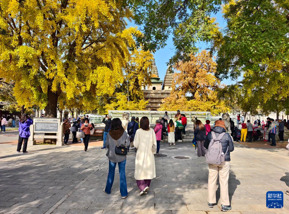 深秋时节,北京石刻艺术博物馆(也称五塔寺)内银杏尽黄,吸引众多市民、游客前来观赏。
