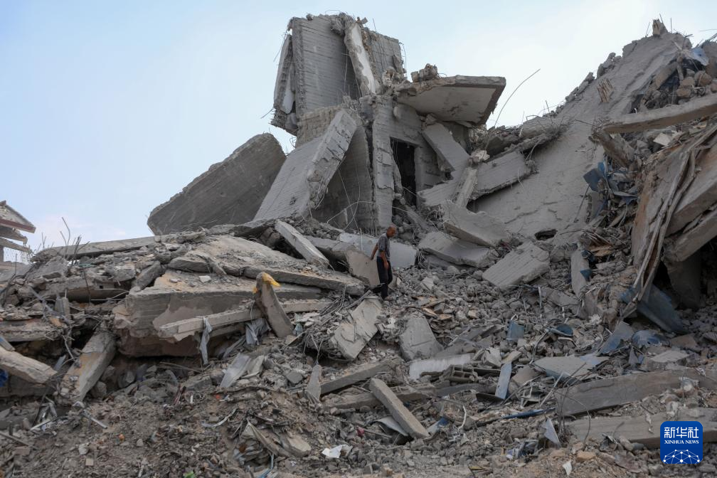 10月29日,一名巴勒斯坦人在加沙城查看遭以色列军队空袭后的废墟。