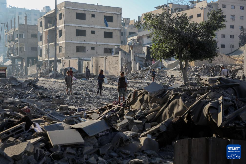 这是10月29日在加沙城一处遭以色列军队空袭后的废墟旁拍摄的巴勒斯坦儿童。