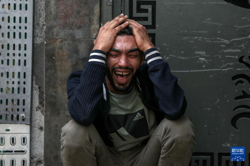 10月29日,一名巴勒斯坦人在加沙城的希法医院痛哭,哀悼在以色列空袭中死难的亲友。