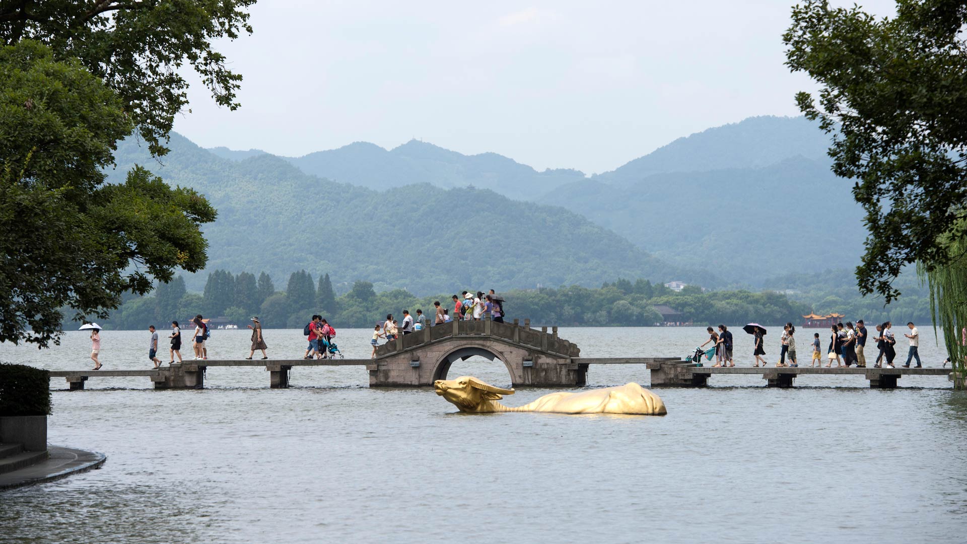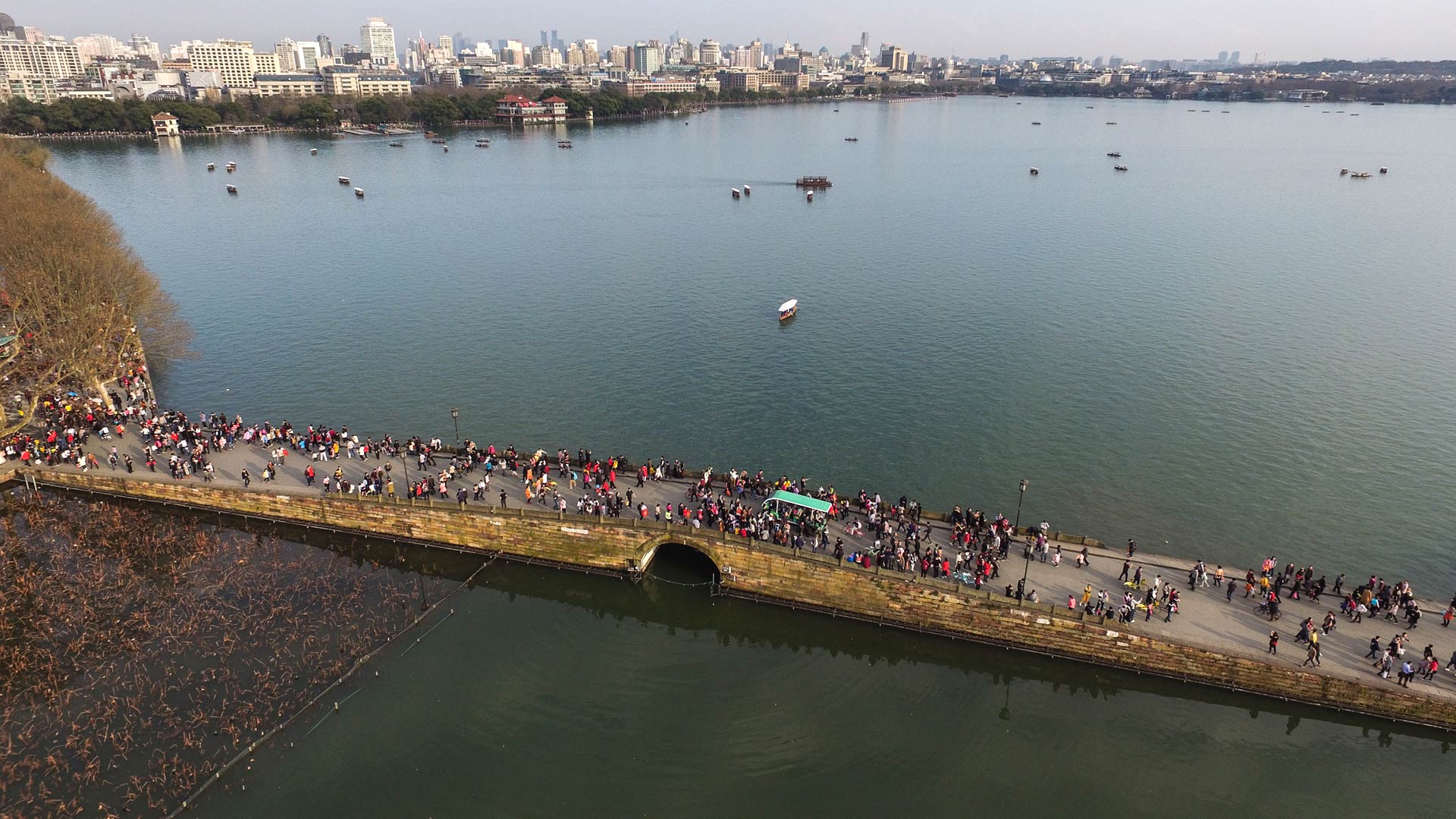 這是4月11日航拍的西湖景區(qū)蘇堤。2001年開始,杭州按“申遺”目標(biāo),對西湖進行了全方位的保護和整治。西湖南線各大公園打通,形成“十里環(huán)湖景觀帶”。龍井八景修復(fù),慧因高麗寺重現(xiàn),南宋官窯博物館擴建,八卦田遺址得到保護,還有飛來峰石刻造像、雷峰塔遺址、龍井寺……(新華社記者 黃宗治攝 )