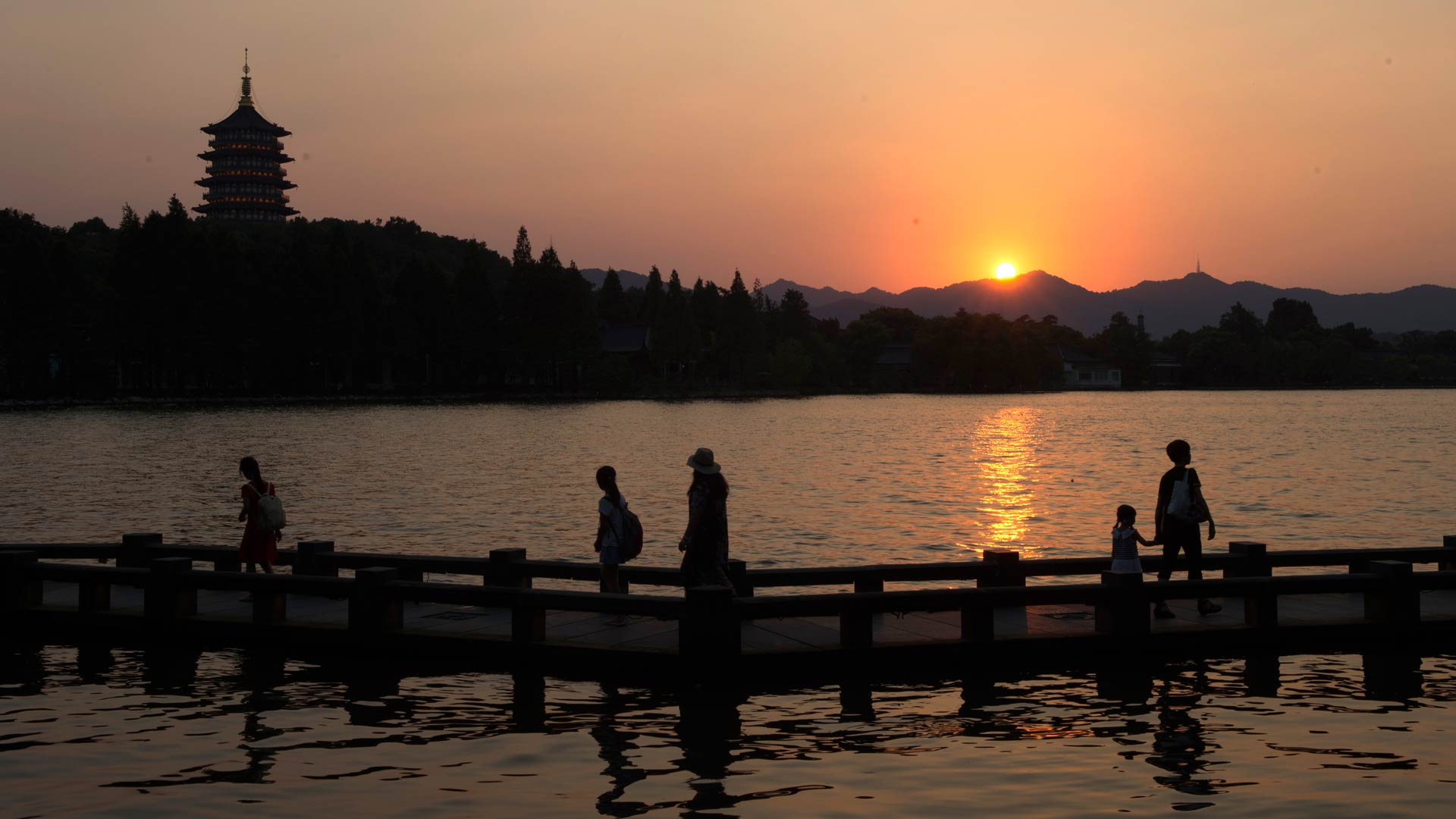 雷峰塔和西湖長橋(8月29日攝)。 西湖自然和歷史原貌逐步恢復(fù)。2002年起,杭州實行“西湖免費開放”,西湖環(huán)湖公園全線打通后,不設(shè)圍墻、不收門票,西湖美景成為人人能享受的公共產(chǎn)品。(新華社記者 張鋮 攝)