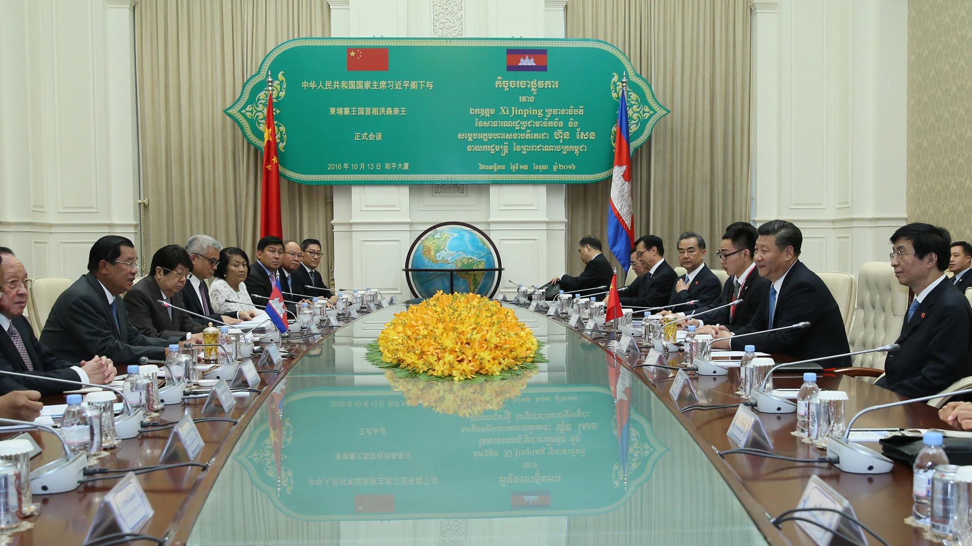 10月13日,國(guó)家主席習(xí)近平在金邊同柬埔寨首相洪森舉行會(huì)談。新華社記者 蘭紅光 攝