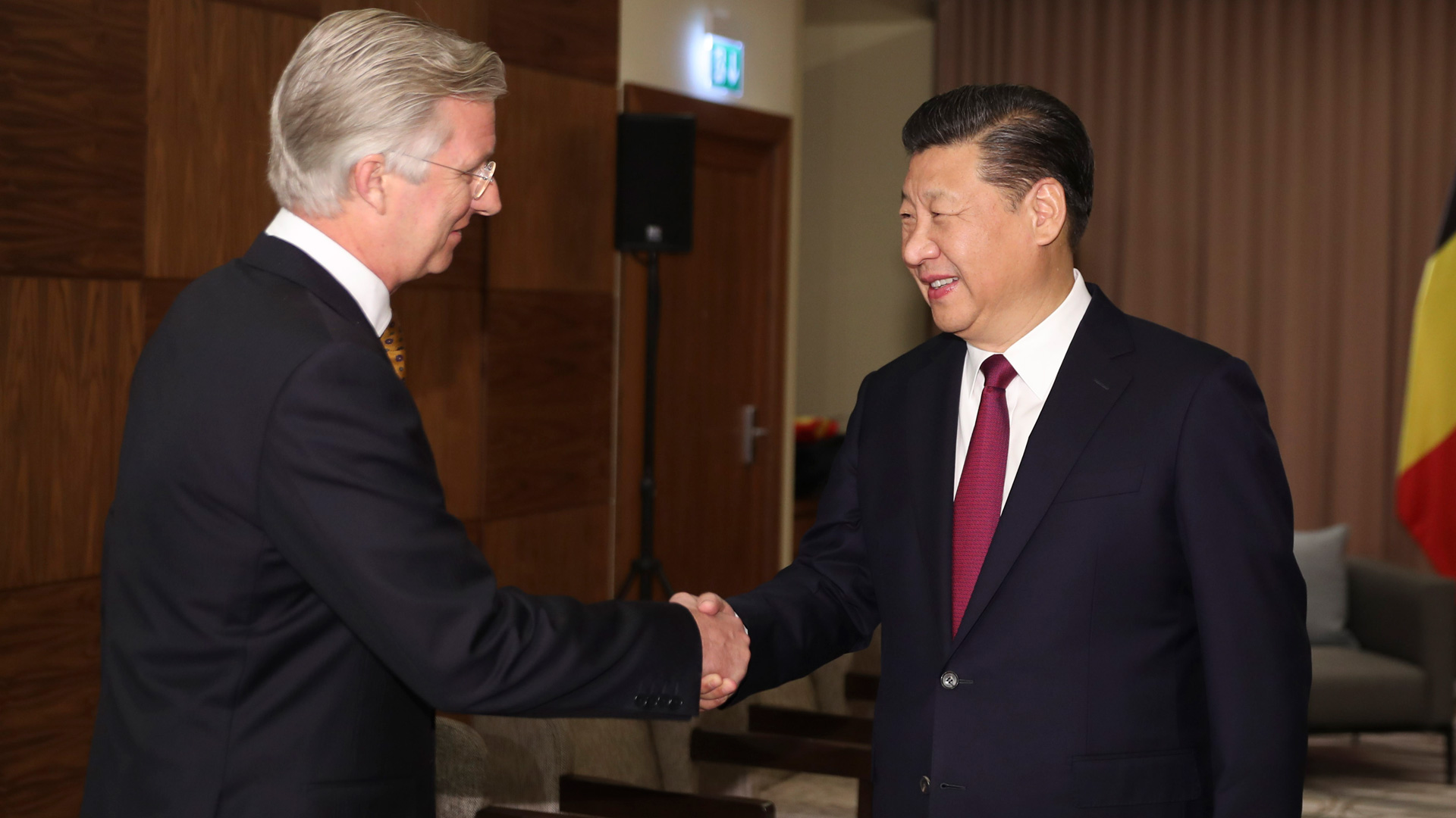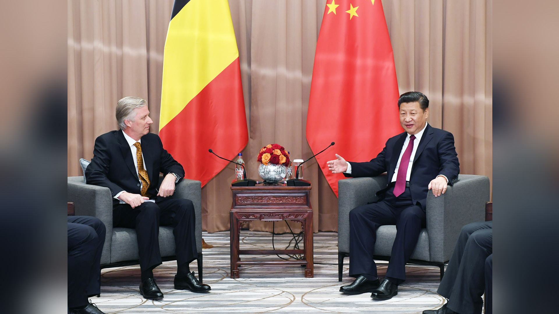 1月17日,國(guó)家主席習(xí)近平在瑞士達(dá)沃斯會(huì)見比利時(shí)國(guó)王菲利普。新華社記者 丁林 攝2017-01-18
