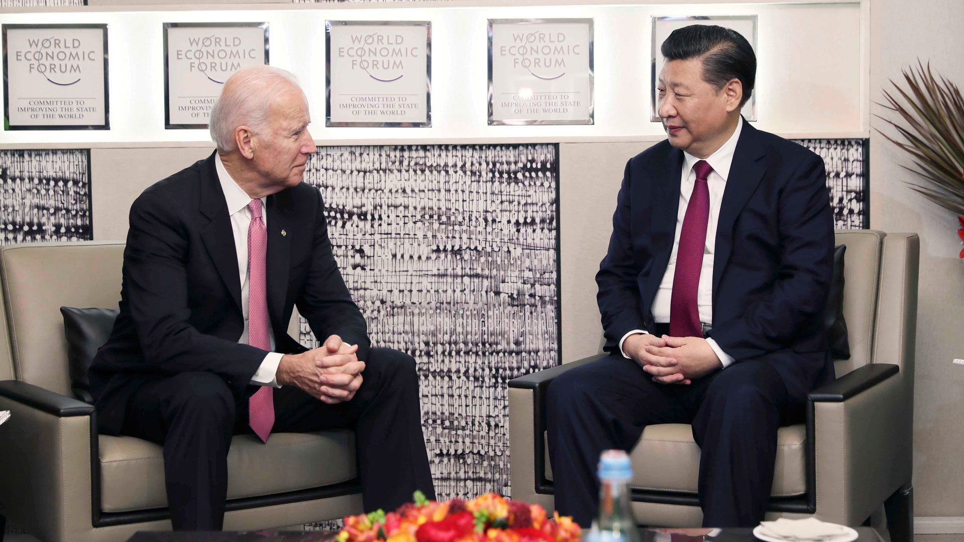 1月17日,國(guó)家主席習(xí)近平在瑞士達(dá)沃斯會(huì)見美國(guó)副總統(tǒng)拜登。新華社記者 蘭紅光 攝2017-01-18