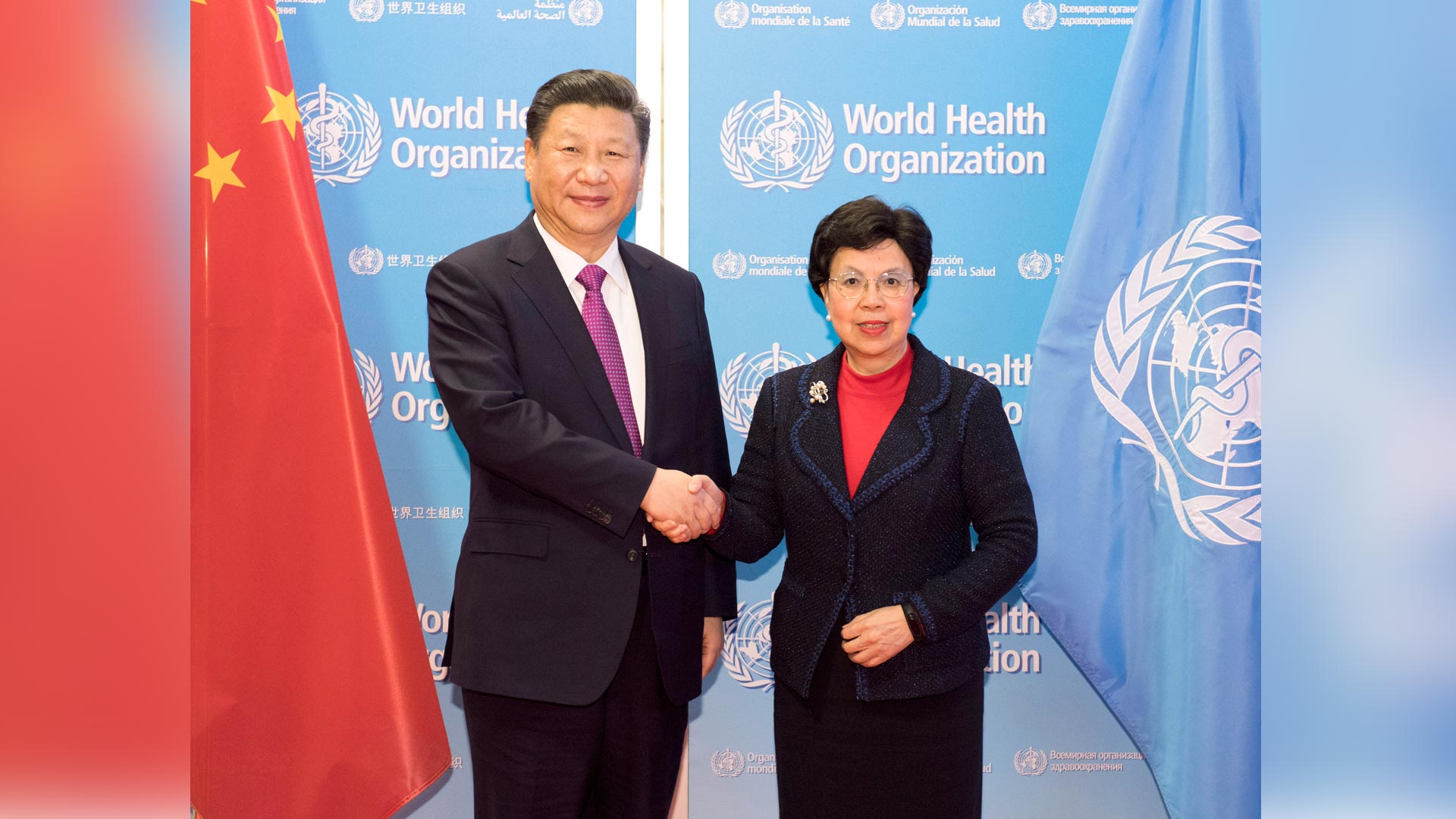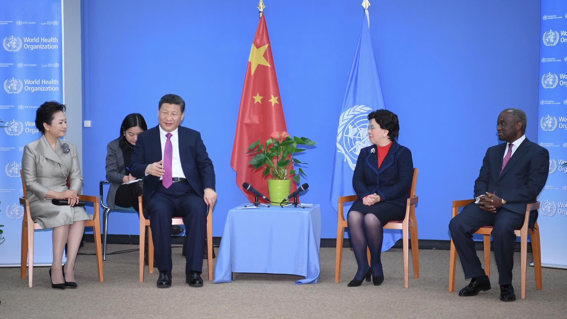 1月18日,國(guó)家主席習(xí)近平在瑞士日內(nèi)瓦訪問世界衛(wèi)生組織并會(huì)見陳馮富珍總干事。 新華社記者 李學(xué)仁 攝2017-01-19