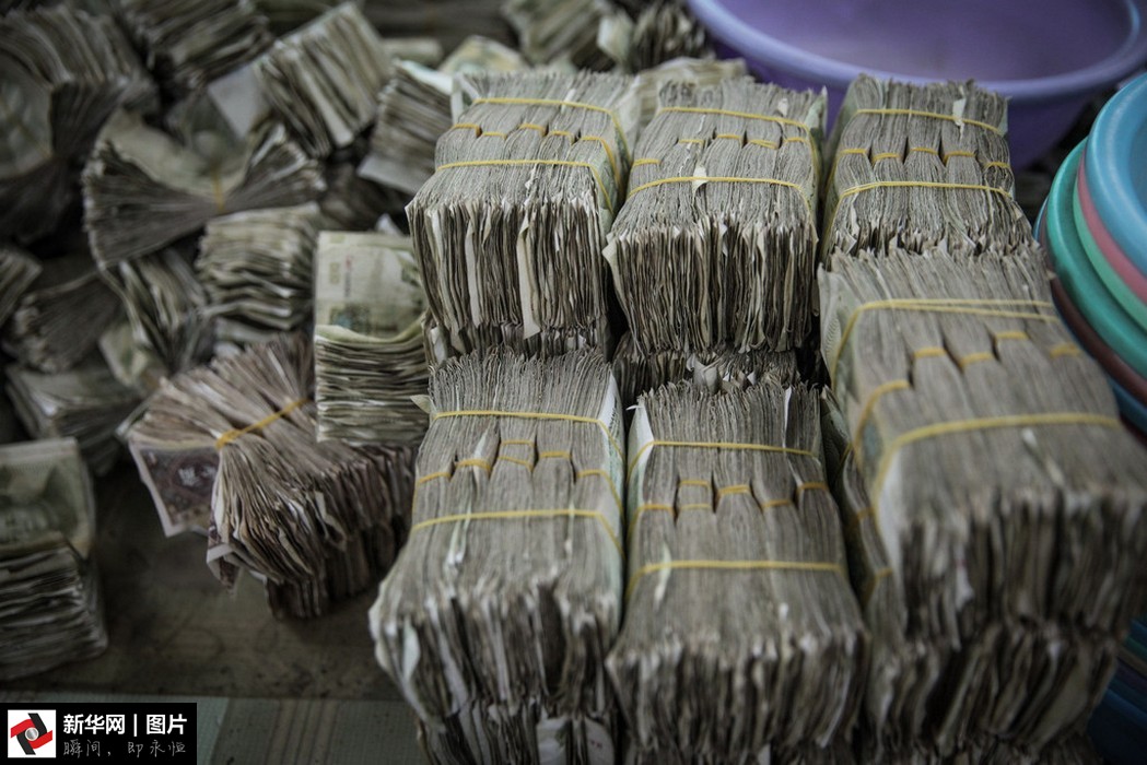 點鈔員從成堆的投幣箱內(nèi)清理出零鈔準備清點。