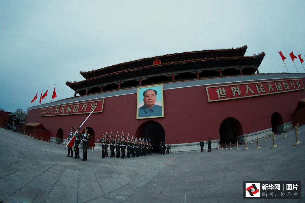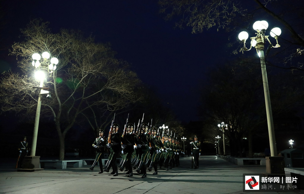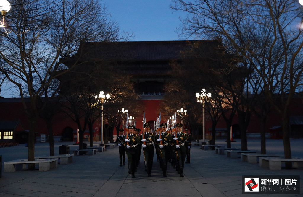 2017年3月5日,第十二屆全國人民代表大會第五次會議在人民大會堂開幕。凌晨4點的長安街,夜色還未褪去,位于故宮午門前一側(cè)的一座武警營區(qū)內(nèi),卻已是燈火通明。一群武警戰(zhàn)士穿起禮兵服、握緊鋼槍開始訓(xùn)練。晨曦微露,從金水橋到國旗桿下,138步、2分07秒、365天,無論雨雪風霜、嚴寒酷暑,他們都守護著五星紅旗冉冉升起。這支部隊就是武警北京總隊天安門支隊國旗護衛(wèi)隊。