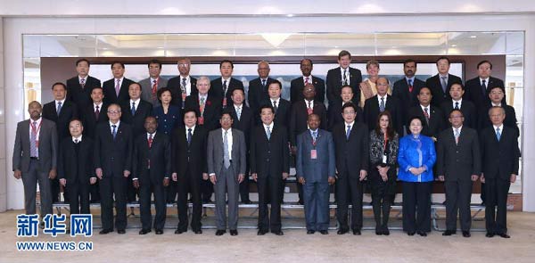 紀(jì)念大會(huì)開(kāi)始前,賈慶林會(huì)見(jiàn)了出席大會(huì)的各國(guó)部長(zhǎng)、駐華使節(jié)和國(guó)際組織負(fù)責(zé)人。