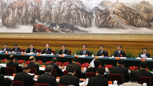 ??? 11月10日,中國共產(chǎn)黨第十八次全國代表大會主席團(tuán)在北京人民大會堂舉行第二次會議。胡錦濤、吳邦國、溫家寶、賈慶林、李長春、習(xí)近平、李克強(qiáng)、賀國強(qiáng)、周永康等出席會議。新華社記者鞠鵬攝