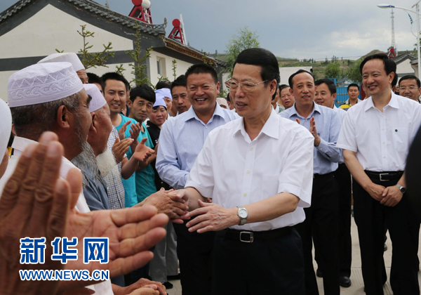 ??? 7月2日至5日,中共中央政治局常委、國務(wù)院副總理張高麗赴寧夏、甘肅調(diào)研。這是7月2日,張高麗來到寧夏固原市的一處移民新村,看望少數(shù)民族群眾,了解搬遷移民生活狀況。 新華社記者劉衛(wèi)兵攝