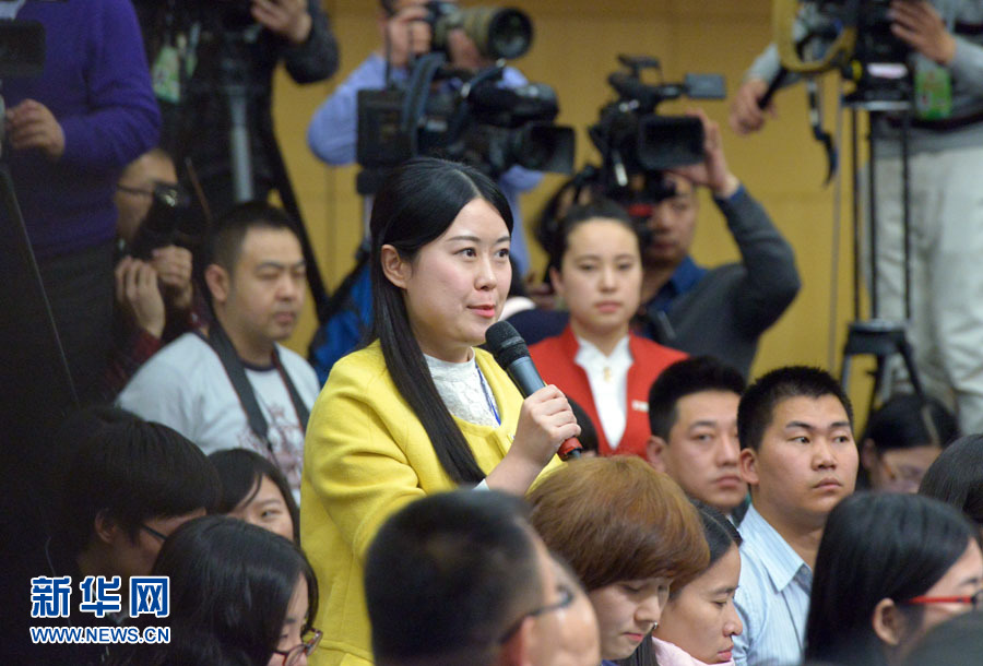 ????十二屆全國(guó)人大三次會(huì)議新聞中心于3月12日在梅地亞中心多功能廳舉行記者會(huì),邀請(qǐng)中國(guó)人民銀行行長(zhǎng)周小川,中國(guó)人民銀行副行長(zhǎng)、國(guó)家外匯管理局局長(zhǎng)易綱,中國(guó)人民銀行副行長(zhǎng)潘功勝,絲路基金有限責(zé)任公司董事長(zhǎng)金琦就金融改革與發(fā)展回答中外記者提問(wèn)。圖為香港衛(wèi)視記者提問(wèn)。新華網(wǎng)/中國(guó)政府網(wǎng) 郭小天攝