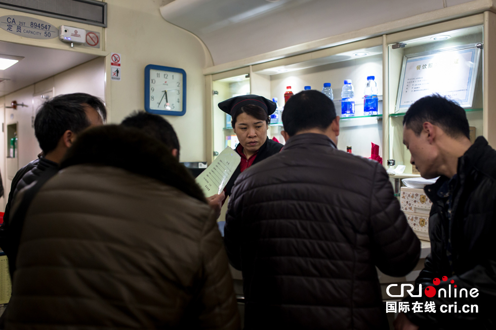 等列車行駛一段時(shí)間后,陸續(xù)有旅客來到餐車點(diǎn)餐。
