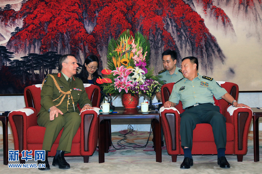 8月14日,中央軍委副主席范長(zhǎng)龍?jiān)诒本?huì)見新西蘭國(guó)防軍司令蒂莫西·基廷。 新華社記者 劉芳 攝