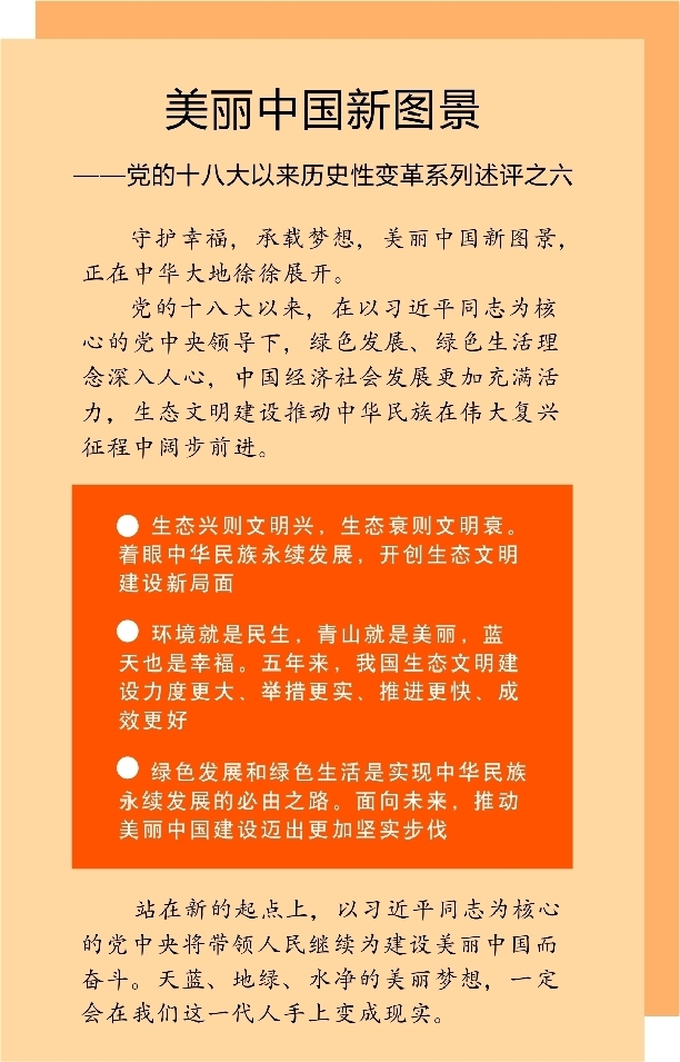 新華社北京10月14日電 題:美麗中國(guó)新圖景——黨的十八大以來歷史性變革系列述評(píng)之六
