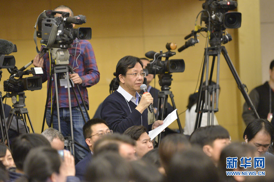 3月10日,十二屆全國人大五次會議新聞中心舉行記者會,邀請中國人民銀行行長周小川、副行長易綱、副行長兼國家外匯管理局局長潘功勝、副行長范一飛就“金融改革與發(fā)展”的相關(guān)問題回答中外記者的提問。圖為路透社記者提問。新華網(wǎng)/中國政府網(wǎng) 王健 攝