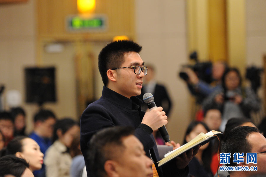 3月10日,十二屆全國人大五次會議新聞中心舉行記者會,邀請國家工商行政管理總局局長張茅就“深化商事制度改革”的相關問題回答中外記者的提問。圖為人民日報記者提問。新華網(wǎng)/中國政府網(wǎng) 王健 攝
