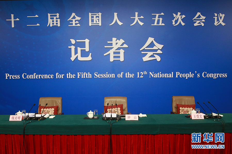 3月11日,十二屆全國人大五次會議新聞中心舉行記者會,主題是“改革開放調結構 創(chuàng)新驅動促發(fā)展”,商務部部長鐘山、副部長王受文、副部長錢克明出席并回答中外記者的提問。圖為記者會現(xiàn)場。 新華網(wǎng)/中國政府網(wǎng) 傅義洲 攝