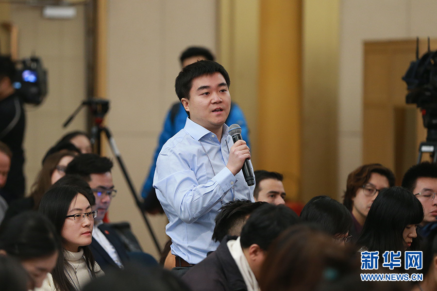 3月11日,十二屆全國人大五次會議新聞中心舉行記者會,邀請工業(yè)和信息化部部長苗圩、副部長辛國斌和總工程師、新聞發(fā)言人張峰就“推進(jìn)實施‘中國制造2025’”的相關(guān)問題回答中外記者的提問。圖為中國國際廣播電臺記者提問。新華網(wǎng)/中國政府網(wǎng) 傅義洲 攝