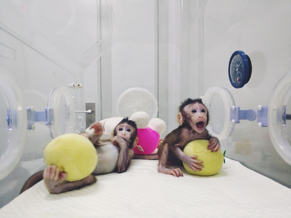 圖為體細(xì)胞克隆猴“中中”和“華華”? 中科院供圖