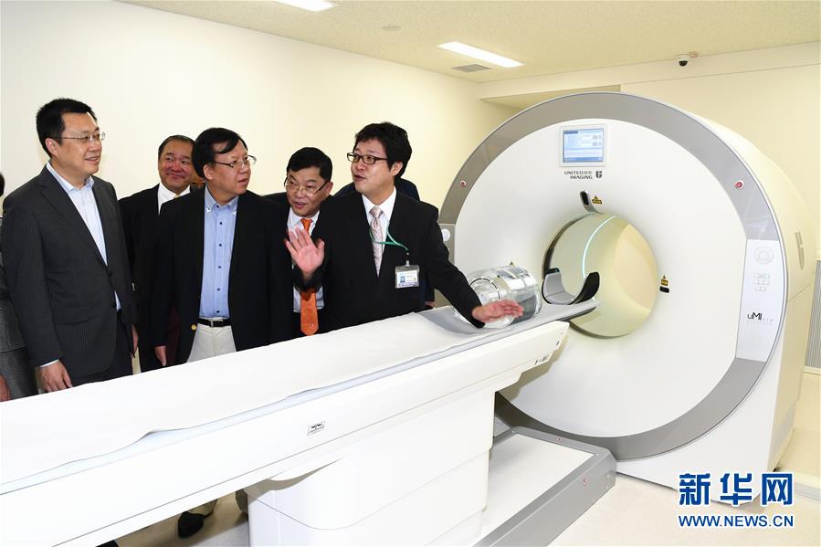 2017年8月24日,在日本名古屋,人們參觀中國(guó)的醫(yī)療設(shè)備“聯(lián)影96環(huán)PET-CT”,這是“中國(guó)智造”大型高端醫(yī)療設(shè)備首次打入日本市場(chǎng)。PET-CT是正電子發(fā)射計(jì)算機(jī)斷層掃描技術(shù)的英文簡(jiǎn)稱,這種醫(yī)療設(shè)備可對(duì)人體進(jìn)行全方位掃描,達(dá)到發(fā)現(xiàn)病灶和診斷疾病的目的。新華社記者華義 攝
