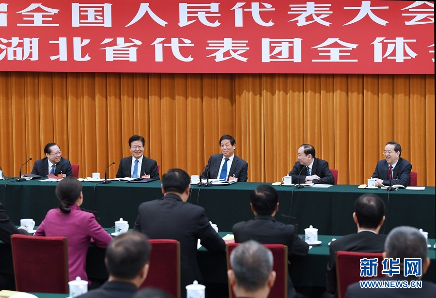 3月9日,中共中央政治局常委栗戰(zhàn)書參加十三屆全國(guó)人大一次會(huì)議湖北代表團(tuán)的審議。 新華社記者 饒愛民 攝