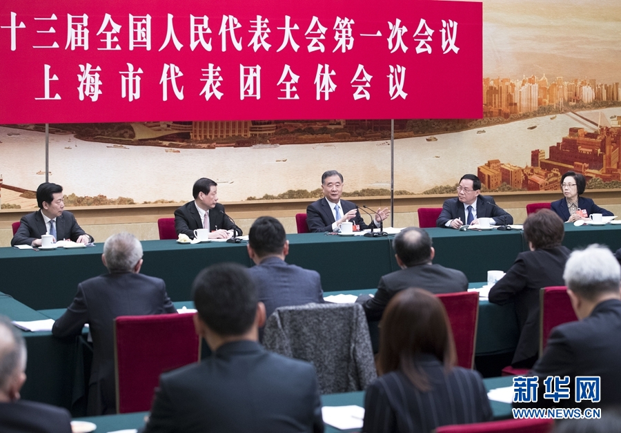 3月9日,中共中央政治局常委、國(guó)務(wù)院副總理汪洋參加十三屆全國(guó)人大一次會(huì)議上海代表團(tuán)的審議。 新華社記者 王曄 攝