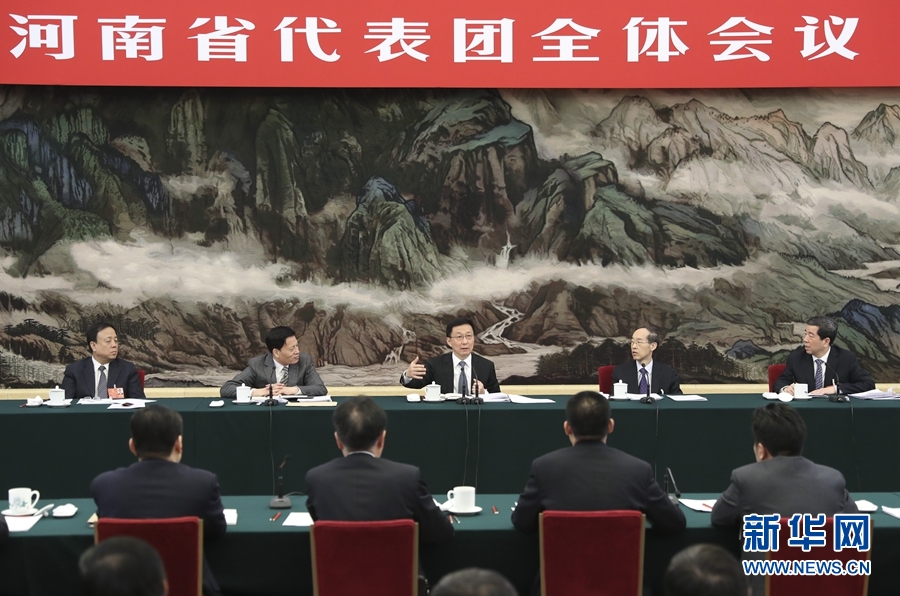 3月9日,中共中央政治局常委韓正參加十三屆全國(guó)人大一次會(huì)議河南代表團(tuán)的審議。 新華社記者 丁海濤 攝