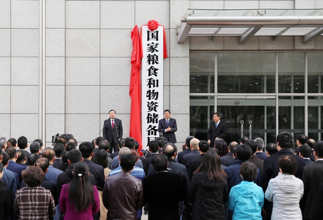 國(guó)家糧食和物資儲(chǔ)備局舉行掛牌儀式。國(guó)家發(fā)展改革委黨組書(shū)記、主任何立峰為國(guó)家糧食和物資儲(chǔ)備局揭牌,國(guó)家發(fā)展改革委黨組成員、副主任張勇出席儀式。國(guó)家發(fā)展改革委黨組成員、國(guó)家糧食和物資儲(chǔ)備局黨組書(shū)記、局長(zhǎng)張務(wù)鋒主持儀式。(圖片來(lái)源:國(guó)家發(fā)改委官網(wǎng))