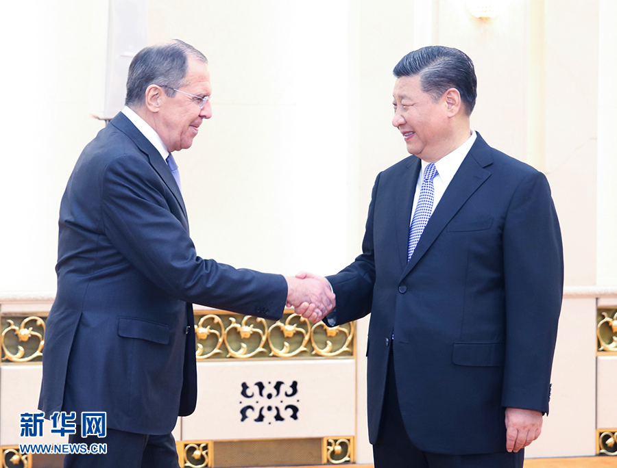 4月23日,國家主席習近平在北京人民大會堂會見俄羅斯外長拉夫羅夫。 新華社記者 姚大偉 攝