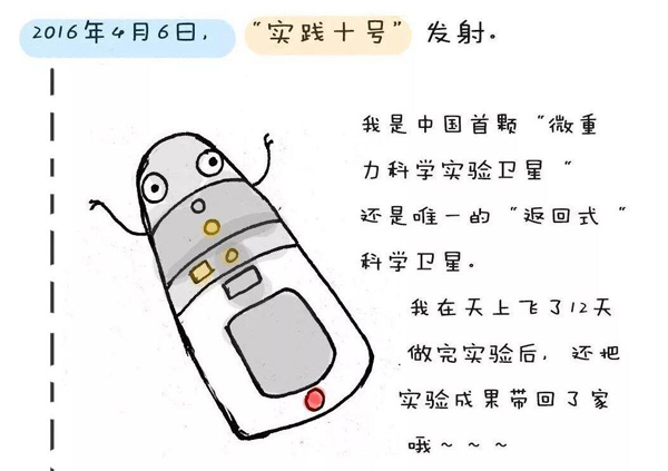 2016年4月6日,實(shí)踐十號返回式科學(xué)實(shí)驗(yàn)衛(wèi)星成功發(fā)射。實(shí)踐十號衛(wèi)星是空間科學(xué)戰(zhàn)略性先導(dǎo)專項(xiàng)首批確定的科學(xué)衛(wèi)星項(xiàng)目中唯一的返回式衛(wèi)星,也是中國第一個專用的微重力實(shí)驗(yàn)衛(wèi)星。2016年4月18日,實(shí)踐十號衛(wèi)星成功返回。