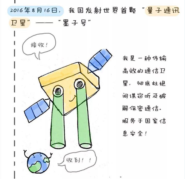 墨子號量子科學(xué)實(shí)驗(yàn)衛(wèi)星于2016年8月16日成功發(fā)射升空。中國量子衛(wèi)星首席科學(xué)家潘建偉院士介紹,如果說地面量子通信構(gòu)建了一張連接每個城市、每個信息傳輸點(diǎn)的“網(wǎng)”,那么量子科學(xué)實(shí)驗(yàn)衛(wèi)星就像一桿將這張網(wǎng)射向太空的“標(biāo)槍”。當(dāng)這張縱橫寰宇的量子通信“天地網(wǎng)”織就,海量信息將在其中來去如影,并且“無條件”安全。2017年1月18日,“墨子號”圓滿完成4個月的在軌測試任務(wù),正式交付用戶單位使用。