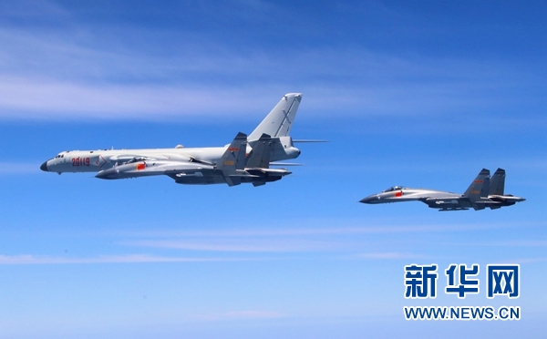 4月26日,人民空軍轟-6K等多型戰(zhàn)機(jī)實(shí)施“繞島巡航”訓(xùn)練課題。 新華社發(fā)(吳岳鵬 攝)