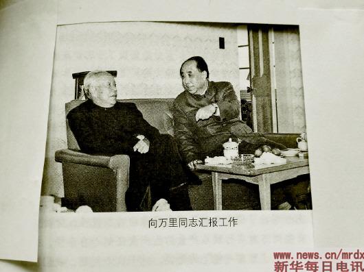王郁昭向萬(wàn)里同志(左)匯報(bào)工作。來(lái)源:《往事回眸與思考》一書(shū)