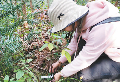 圖為科研人員對回歸野外的滇桐采取保護(hù)措施。楊 靜攝