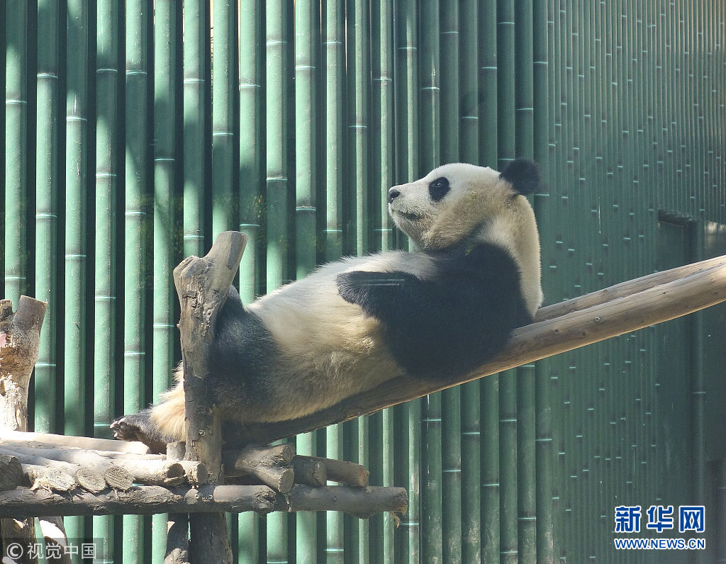 5月2日,在動(dòng)物園內(nèi),熊貓曬著太陽(yáng),時(shí)不時(shí)伸個(gè)懶腰,翻個(gè)身,笨拙的動(dòng)作盡顯萌態(tài)。(圖片來源:視覺中國(guó))