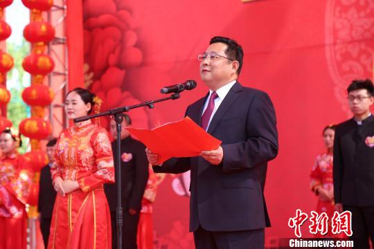 永城市委書記、市長李中華親自到場為新人們證婚?!〈鲃?攝