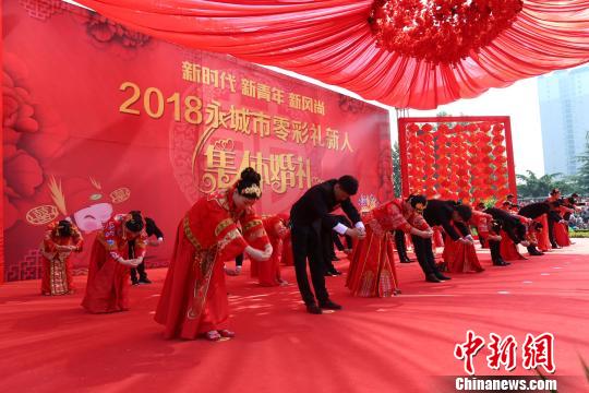 5月4日是五四青年節(jié),當日上午,以“新時代、新青年、新風尚”為主題的河南永城市2018“零彩禮”新人集體婚禮在該市人民廣場隆重舉行。來自全市的18對新人以“零彩禮”集體婚禮的形式步入幸福的婚姻殿堂,致敬青春。